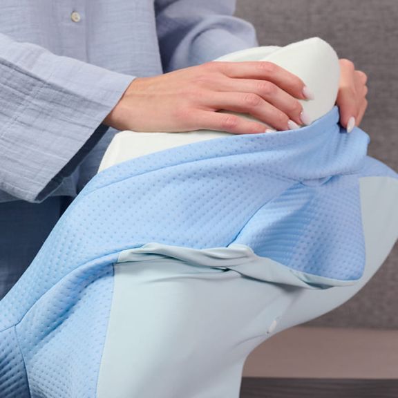 Lay down slightly higher up on the pillow, let your cheek comfortably slide into the central curve of the pillow, feel free to use the special arm cut out area.